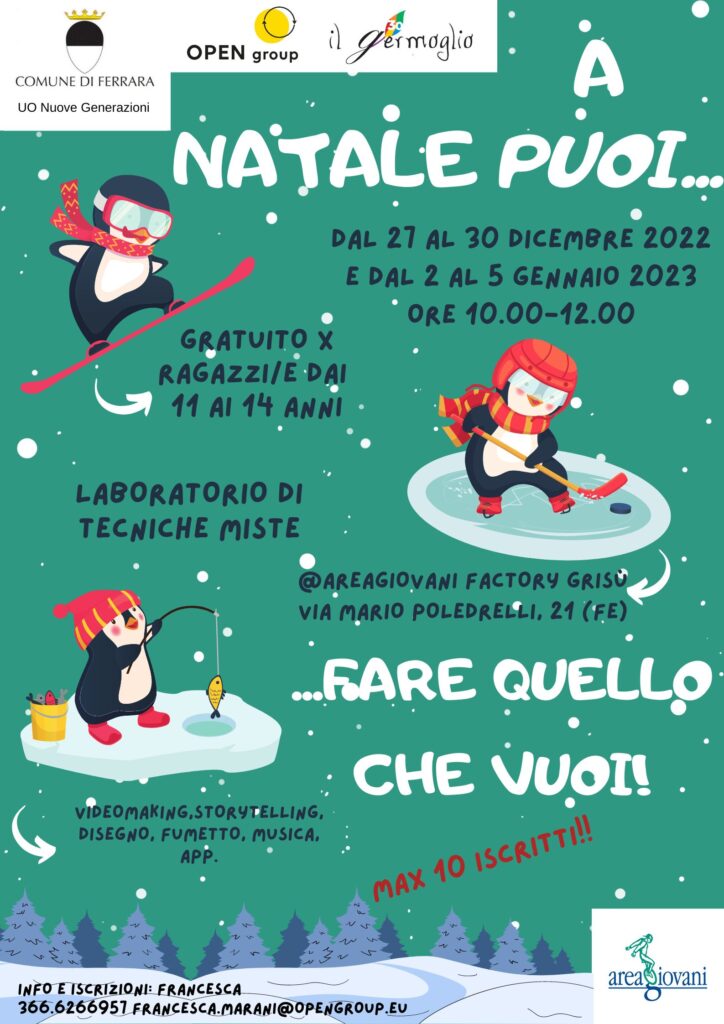 con piacere comunichiamo la partenza del laboratorio Mondi Possibili 2.0 durante le vacanze natalizie, dal 27 dicembre 2022 al 5 gennaio 2023, promosso dal Centro UOI di Ferrara, per tutti i ragazzi nella fascia dagli 11 ai 14 anni.