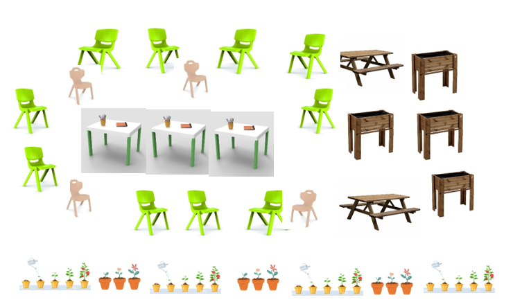 Per la realizzazione di orti urbani sono in arrivo vasche rialzate in legno e panche e tavolini in legno per la scuola Primaria. Sono invece già arrivate sedioline di varie misure e tavolini per allestire spazi di socialità all’aperto per la scuola d’infanzia.