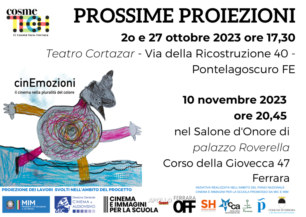 I nostri cortometraggi verranno nuovamente proiettati il 20 e il 27 ottobre 2023 ore 17,30 al Teatro Cortazar di Pontelagoscuro in via della Ricostruzione 40.
