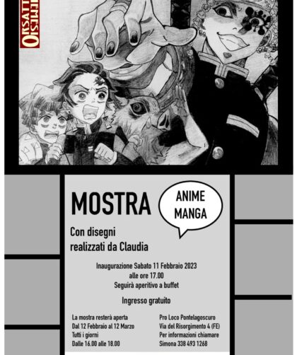 RITORNA L’ARTE ALLA SALA NEMESIO ORSATTI DI PONTELAGOSCURO.👉Sabato 11 febbraio 2023 alle ore 17 è stata inaugurata la mostra “ANIME MANGA”, 20 fumetti a matita …
