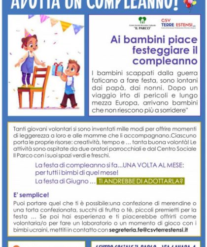 https://ferrara.csvterrestensi.it/news/adotta-un-compleanno/ Scopri come contribuire a offrire momenti di festa e leggerezza per le attività estive che accoglieranno i bambini ucraini presso due oratori e il …